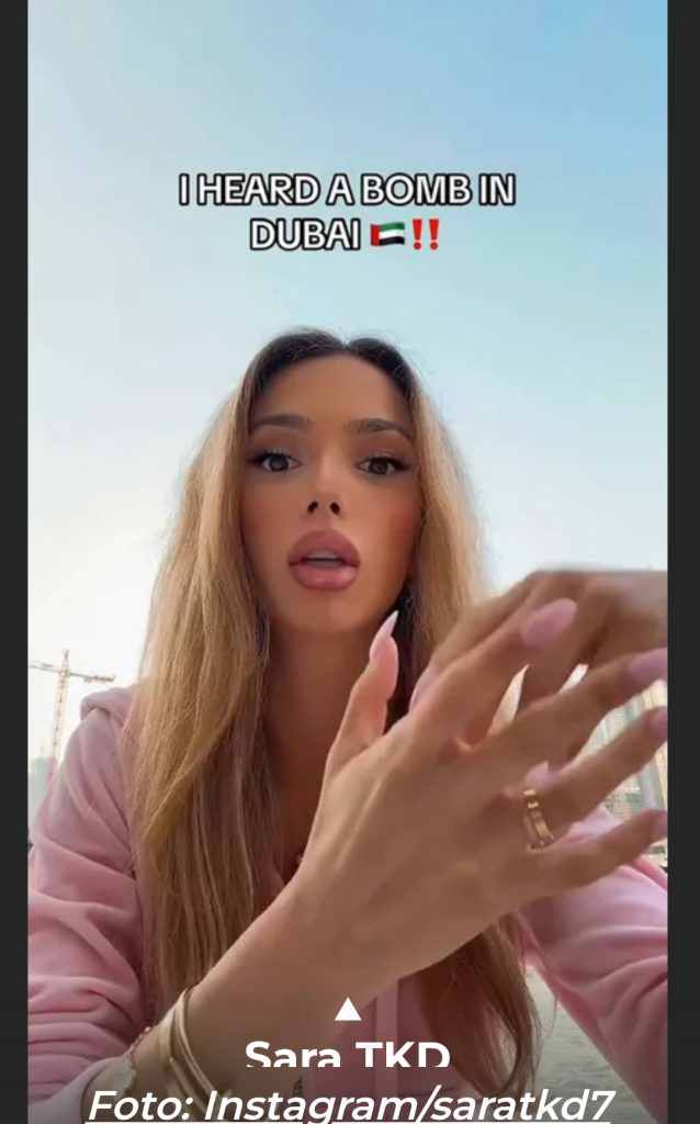 Tim povodom oglasila se i srpska influenserka Sara Damnjanović, poznatija kao Sara TKD, koja se trenutno nalazi u Dubaiju. Vidno potresena, podelila je sa pratiocima dramatične trenutke koje je proživela.